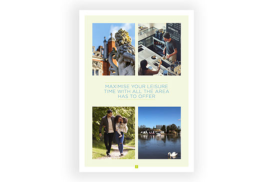Design of brochure. The brochure was delivered as a PDF to be printed in house by the client — the design is tailored for this printing method.