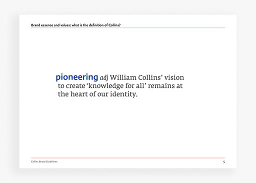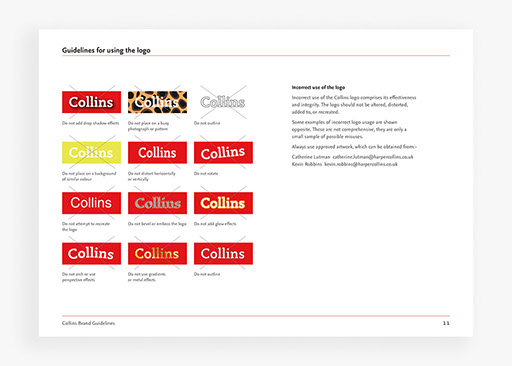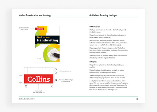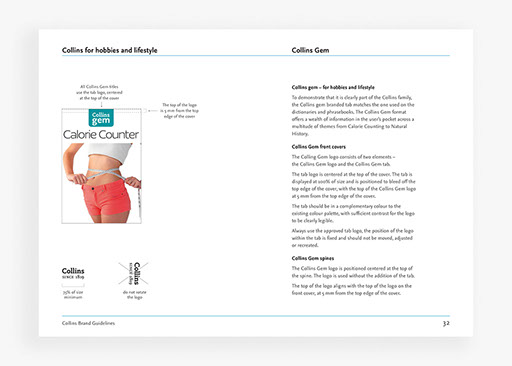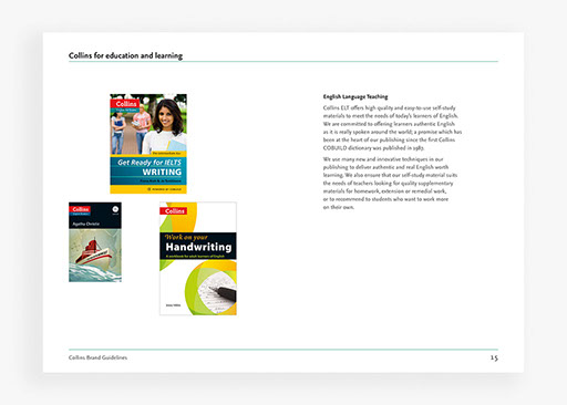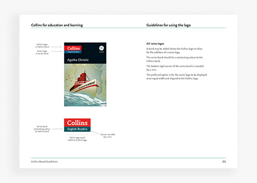Creation of brand guidelines for Collins publishers, covering all applications of the brand for print and digital use.