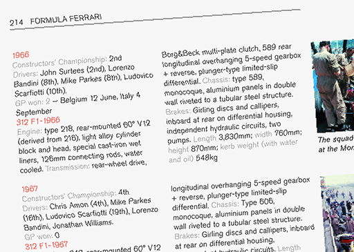 Design of fully illustrated official biography of the Formula Ferrari team.