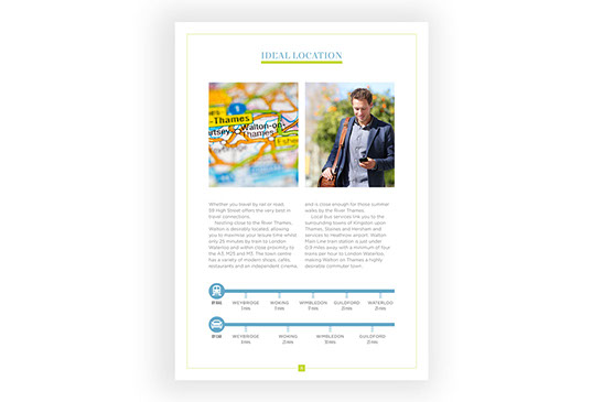 Design of brochure. The brochure was delivered as a PDF to be printed in house by the client — the design is tailored for this printing method.